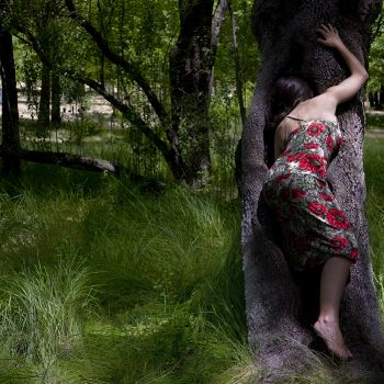 Artificio del instinto muestra la mímesis de la persona con la naturaleza fusionando al ser humano, sumido en un mundo cada día más superficial, con lo puramente natural.